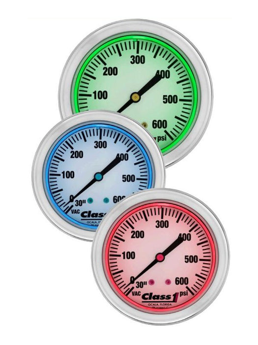 Class1’s series of liquid-filled backlit pressure gauges use LEDs to light the liquid-filled gauges. The gauge case has been upgraded to isolate the LED light from the gauge. LED lights are independent of the gauge allowing for interchangeability color selection and easy field replacement. Hales Single LED Assembly produces a bright gauge and can be easily retrofitted at the job.
