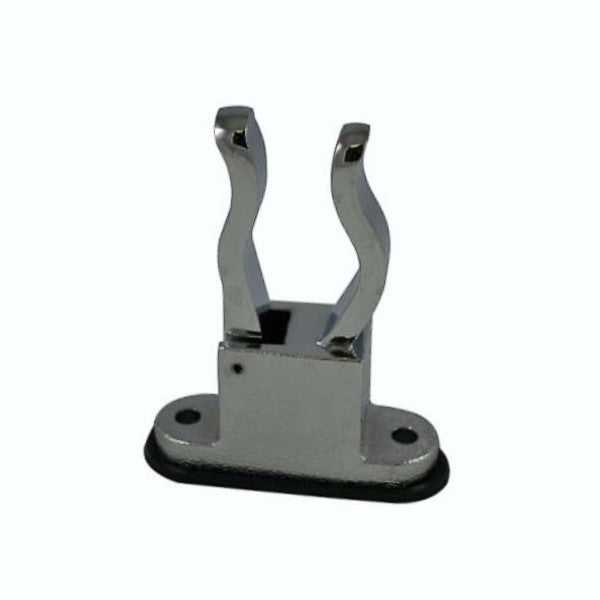 Here we have a two different sized South Park Horizontal Mount Pike Pole Brackets. They are made of die-cast zinc with chrome-plated finish. Two sizes are available here: 1-1/8 OD or 1-1/2 overall diameter. Either mount is furnished with a body gasket.